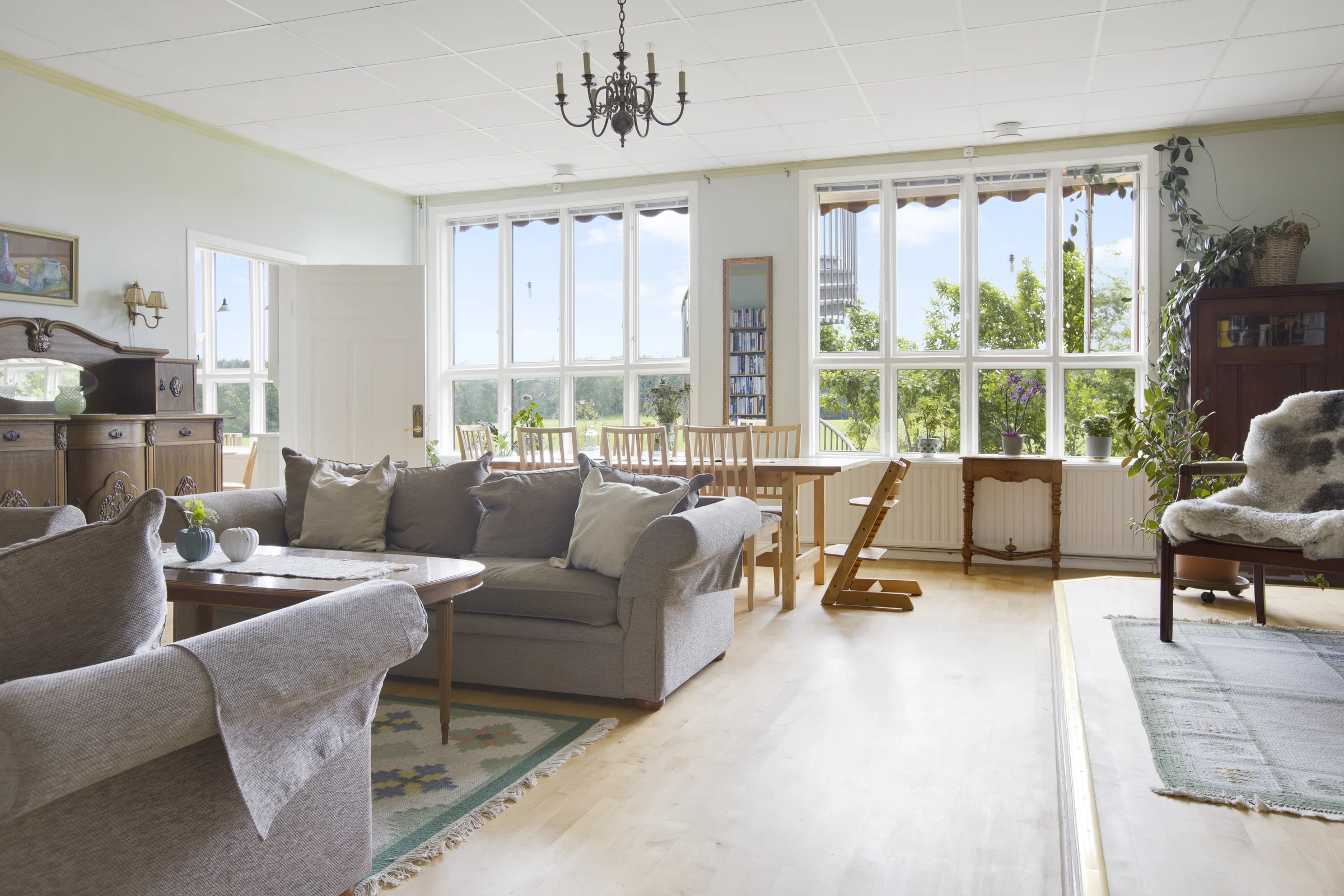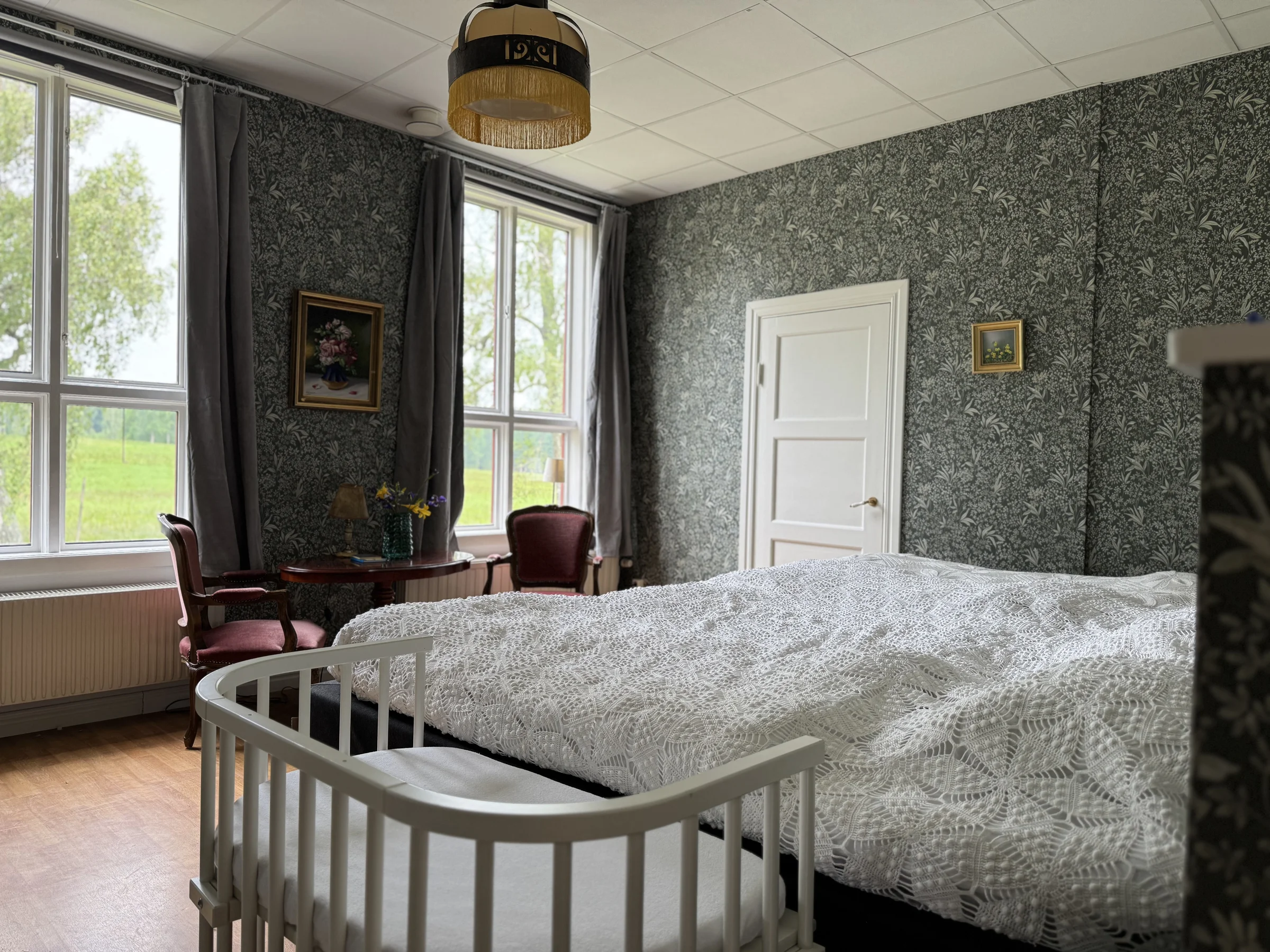 Lindeskog ist das große Familienapartment der alten Kyrkskola – ein Ort für gemeinsame Zeit mit vielen Menschen, die zusammen reisen. Fünf Schlafzimmer und zwei große Familienbetten bieten viel Platz für zwei Familien, Freundesgruppen oder besondere Anlässe wie Geburtstage oder Midsommar. Durch die großen Fenster fällt den ganzen Tag über Licht in die Räume und der Blick öffnet sich über das weite Feld, auf dem sich oft Rehe, Hasen oder Füchse zeigen. Morgens weckt die aufgehende Sonne das Master Bedroom im Osten, während Küche, Wohnzimmer und Garten bis in den Abend im Licht liegen. Gekocht wird in der großen Küche – zusammenkommt man später an der langen Tafel im Wohnzimmer, am Kamin.